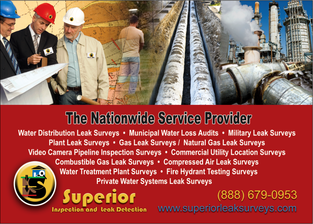 · Water Distribution Leak Surveys · Water Treatment Plant Surveys · Municipal Water Loss Audits · Private Water Systems Leak Surveys · Sewer Leak Surveys & Sewer Line Location